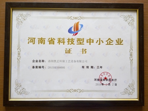 近日,洛陽凱正環(huán)保工藝設(shè)備有限公司榮獲“河南省科技中小企業(yè)”“ 科技創(chuàng)新先進企業(yè)”“ 立信示范單位”。