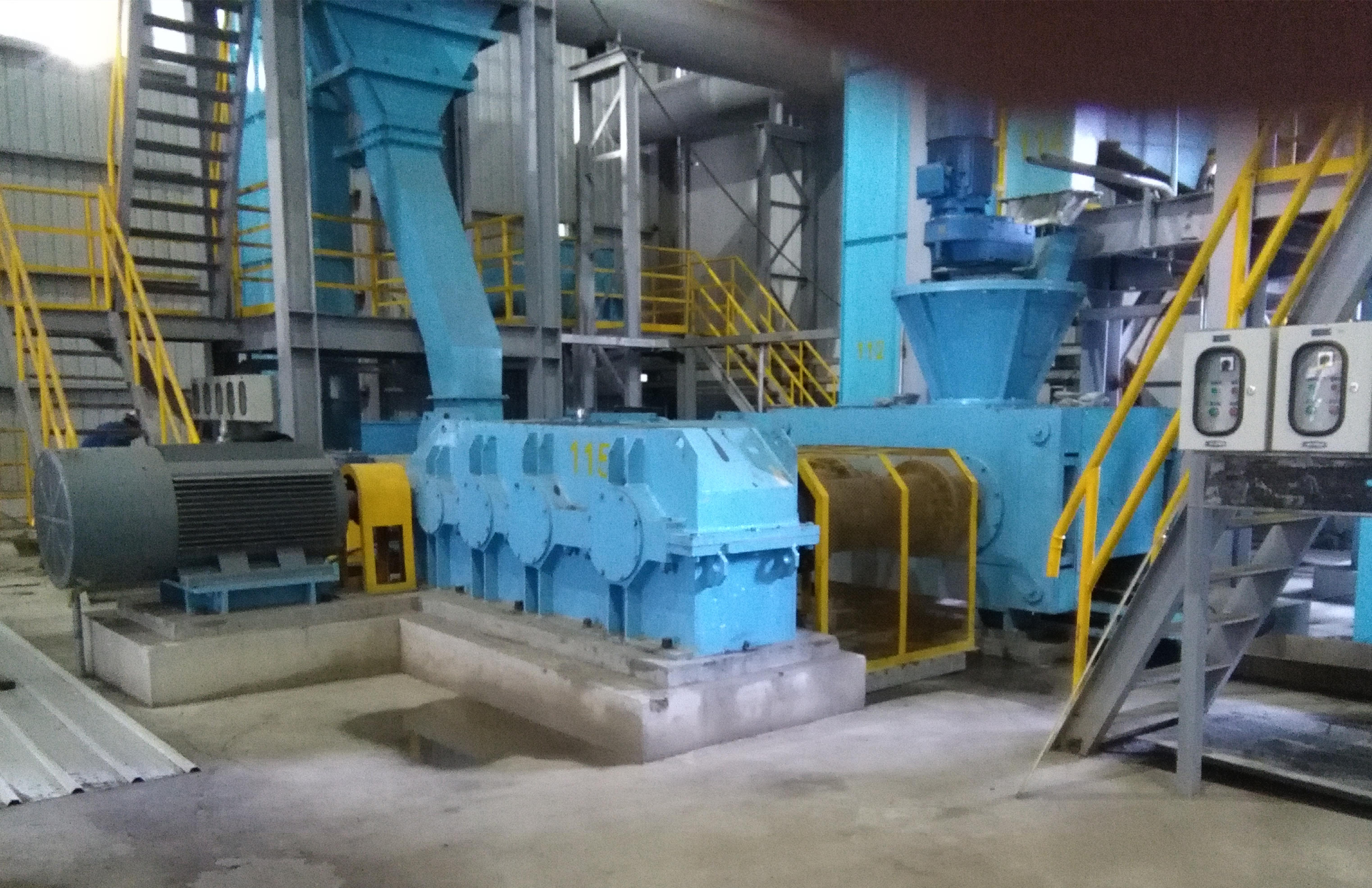 出窯石灰經(jīng)過篩選,小于3mm的粉料進(jìn)入高壓石灰粉壓球機(jī)壓球,球塊規(guī)格為35mm*25mm*15mm(長*寬*厚),也可按照需方要求定制,獲得球塊體積密度1.9-2.2g/cm3,墜落強(qiáng)度和塊狀石灰相當(dāng)。壓球后經(jīng)過篩選,合格球塊進(jìn)入成品倉供冶煉使用。不合格球塊由皮帶機(jī)輸送至粉料倉,重新進(jìn)入壓球流程。